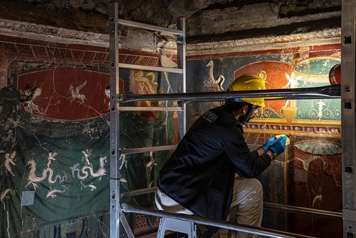 Il dottor Manuel Giandomenico (Sapienza Università di Roma) presenta l'esperienza di restauro delle pareti dipinte della villa romana di Positano.