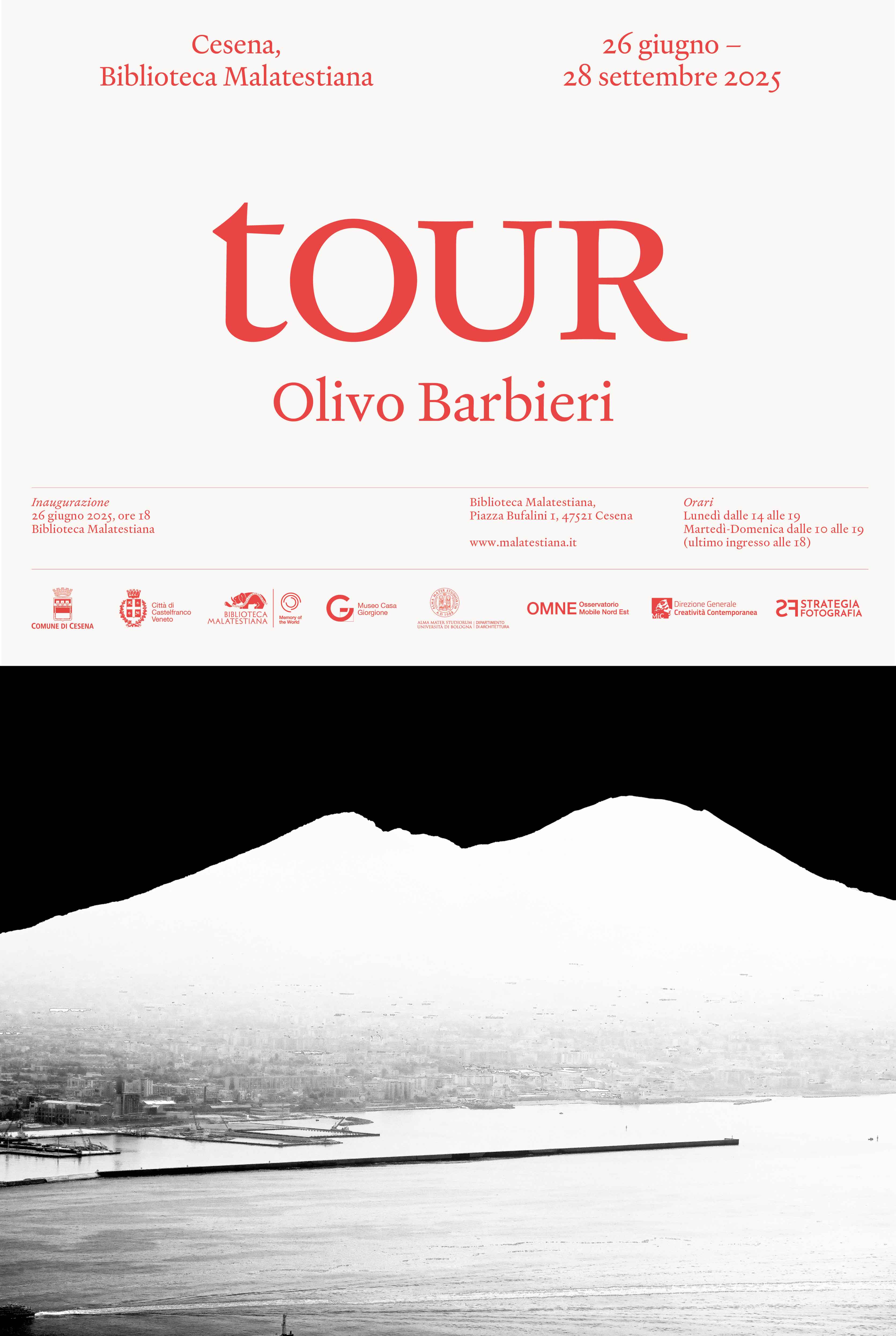 La mostra tOUR, nata dal dialogo tra alcune opere dall’archivio di Olivo Barbieri e una selezione di volumi antichi provenienti dai fondi della stessa biblioteca, si inserisce nell’ambito del progetto OMNE LAND. Altre tempeste, sostenuto da Strategia Fotografia 2024 e promosso dalla Direzione Generale Creatività Contemporanea del Ministero della Cultura
